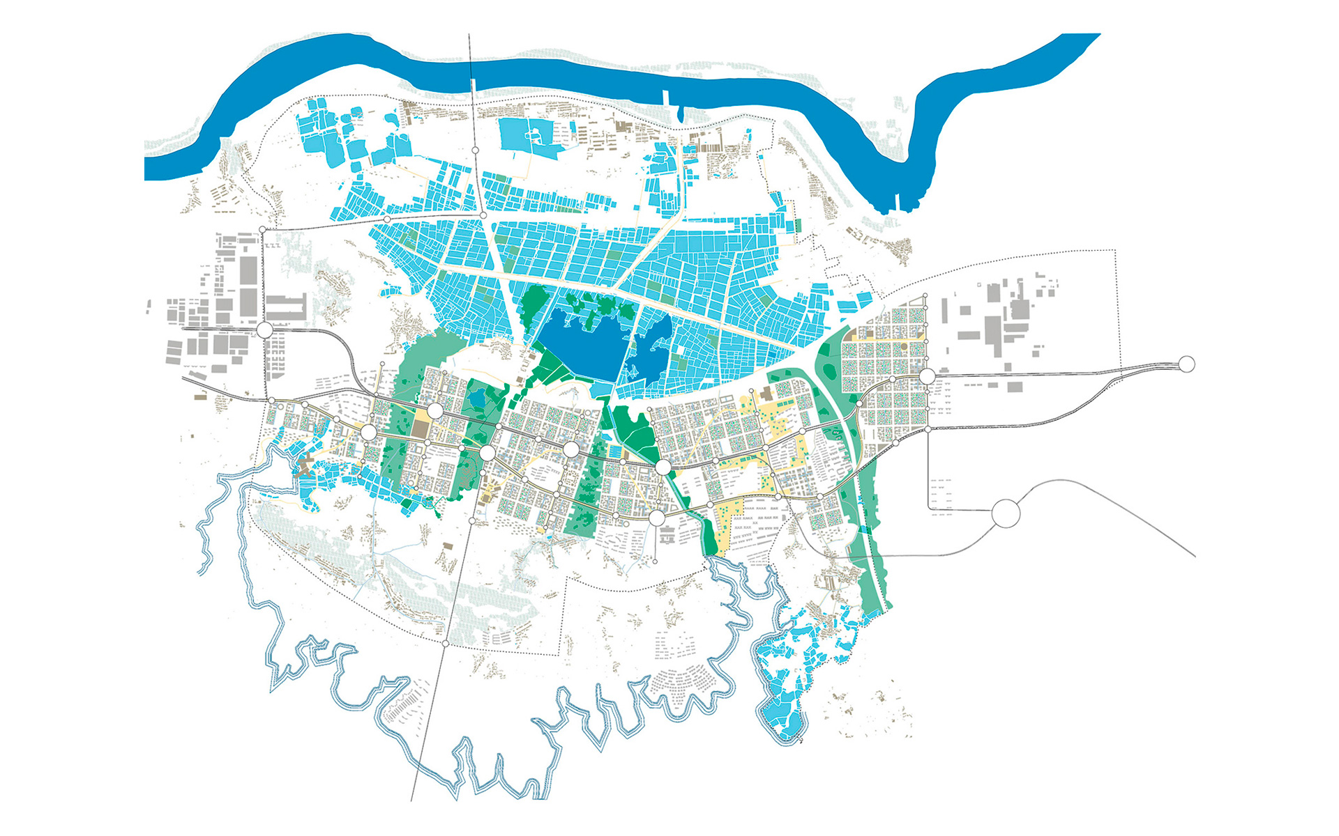 Following the Paris Agreement, France and China set up a strategic partnership on sustainable cities, leading to the Prime Minister’s visit to Wuhan in February 2017. An international competition was announced in 2017 for the French-Chinese eco city of Caidan. Lafayette is co-designing the master plan with AREP. Working in collaboration with consultants Carbone 4, the study includes a 2°C-compatible strategy to reduce the environmental impact of new construction, both upstream (materials, equipment, installation) and during building operation in the Chinese context. The design fosters bioclimatic design maximising free supply of energy in the heart of the area.